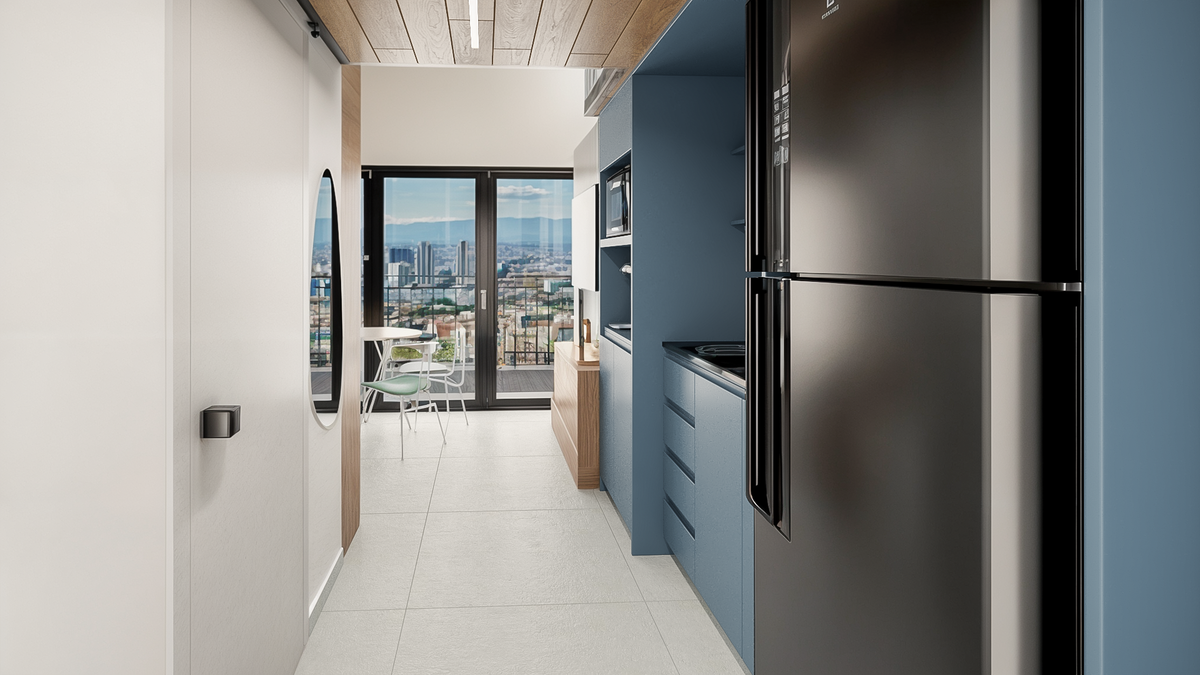 A localização influenciou diretamente o conceito visual do imóvel. O bairro do Brooklin, em São Paulo, mistura a rapidez dos polos comerciais com o acolhimento das ruas arborizadas. Assim, o Projeto de Interiores Studio 25M² Moderno em São Paulo buscou unir essa vibração urbana ao conforto necessário para estadias curtas ou longas. O cimento queimado no piso remete ao estilo industrial, enquanto tons amadeirados trazem o calor necessário para o ambiente.