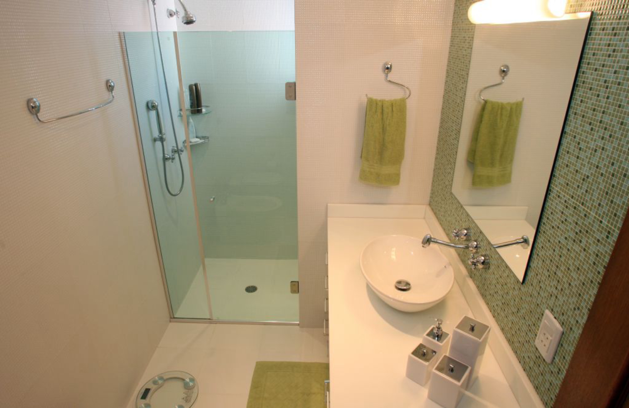 Imóveis novos também despertam o desejo de mudanças. Boa parte das construtoras entrega os banheiros com peças em cores básicas, o que motiva as reformas. “Selecionar os acabamentos e combiná-los de forma harmoniosa é o grande desejo de quem vai fazer a mudança para uma casa nova”, analisa Ester Kloss, que transformou um banheiro apenas mudando alguns detalhes e gastando pouco. “Foi possível manter os azulejos porque eram brancos, bonitos e de qualidade.” Com R$ 2.700 foi possível colocar pastilhas, substituir a cuba e o tampo, colocar um box e instalar uma bancada branca em porcelanato e um móvel em madeira abaixo da pia, que recebeu acabamento em verniz de poliuretano, próprio para áreas úmidas. “A ideia era ter um banheiro bem feminino, com espaço para maquiagem e cosméticos”, diz a arquiteta.