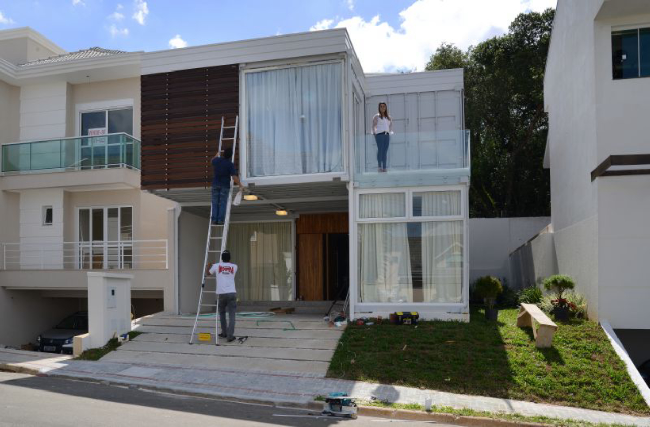 A residência, que fica em um condomínio em Santa Felicidade, tem 220 m² e foram necessários seis contêineres de 40 pés, que suportam 30 mil quilos cada.