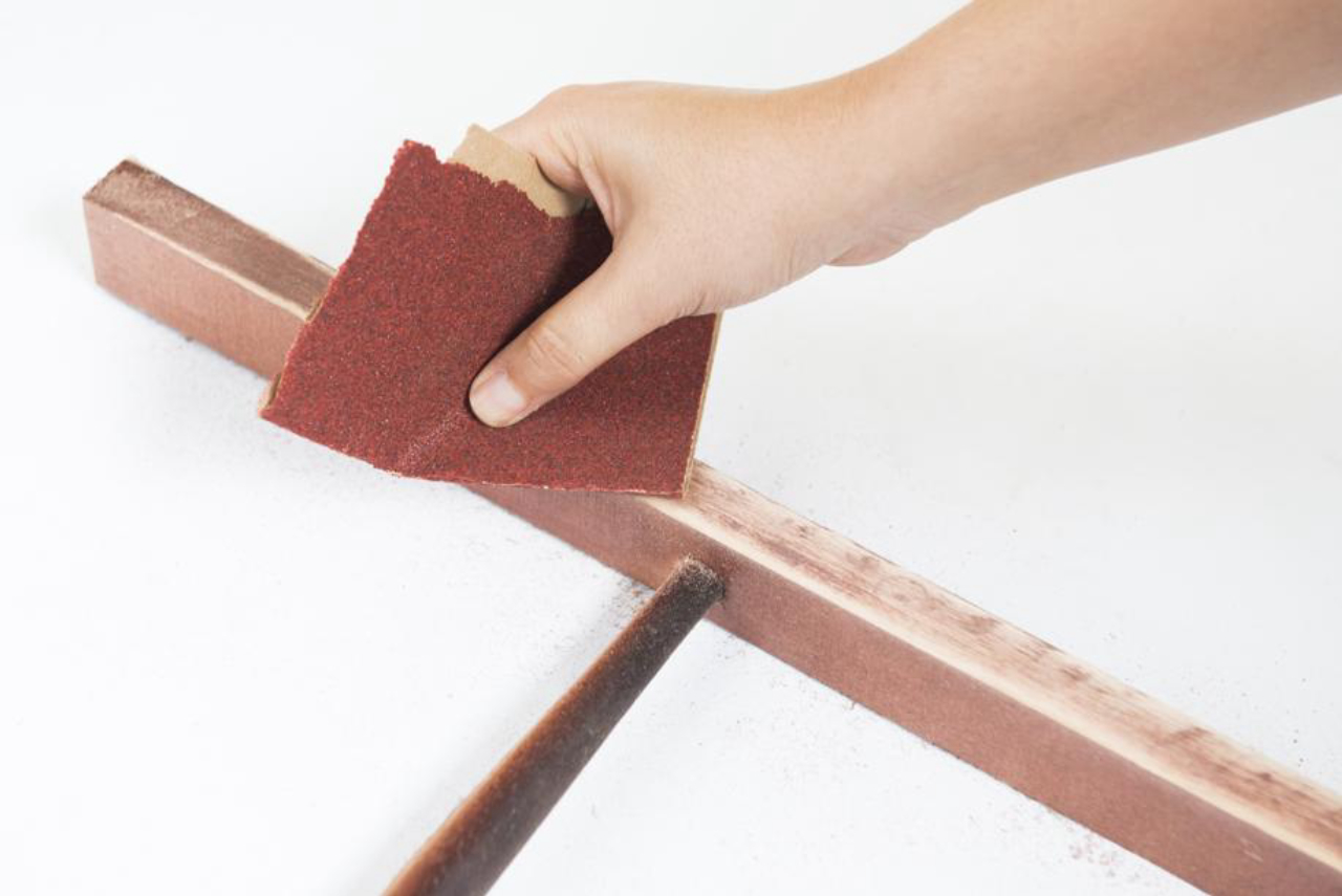 Comece lixando bem a escada para retirar qualquer camada de verniz.