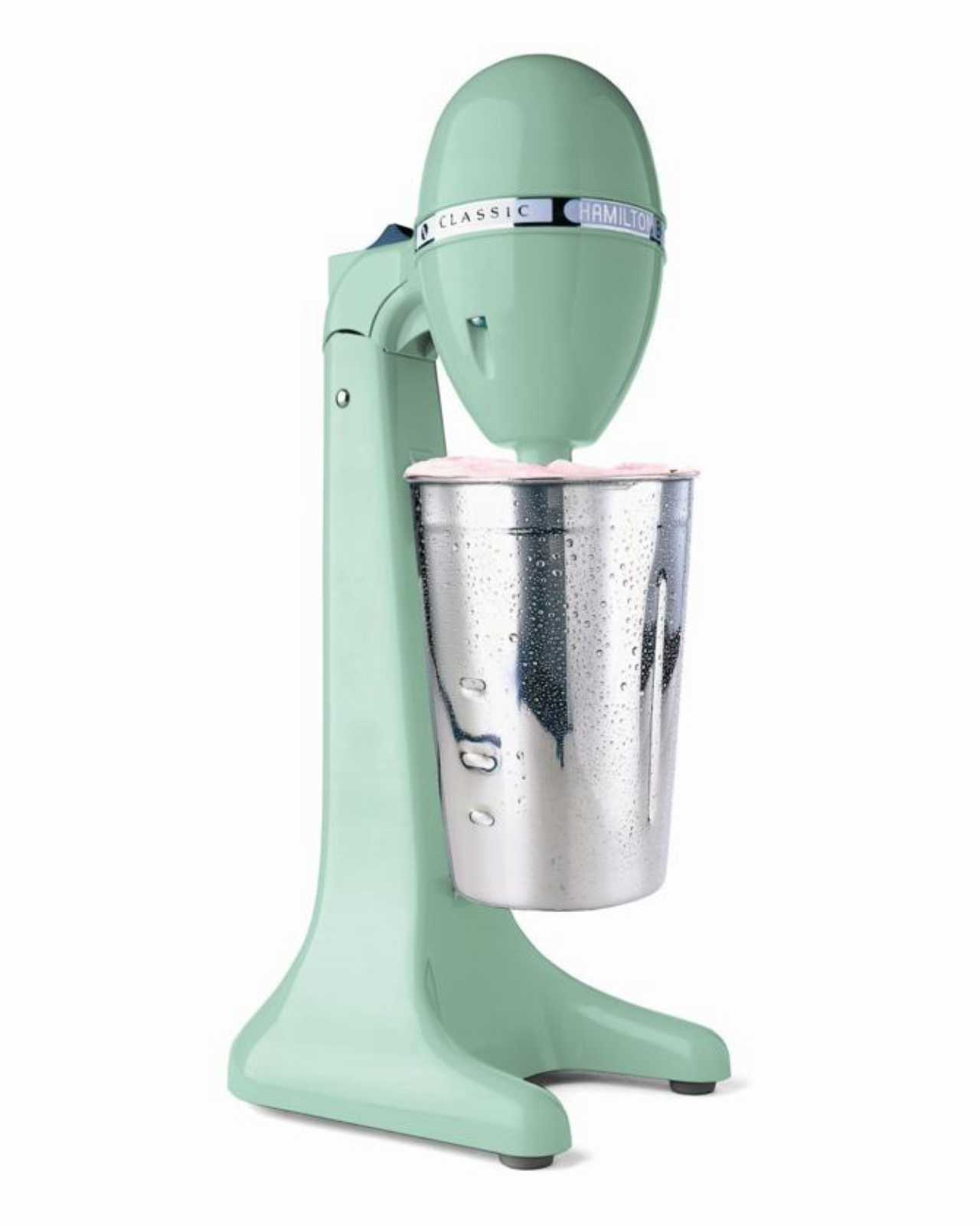 Mixer Drinkmaster de linhas curvas e contemporâneas, da Hamilton Beach, com copo de aço inox. Na Spicy, sai por R$ 339.