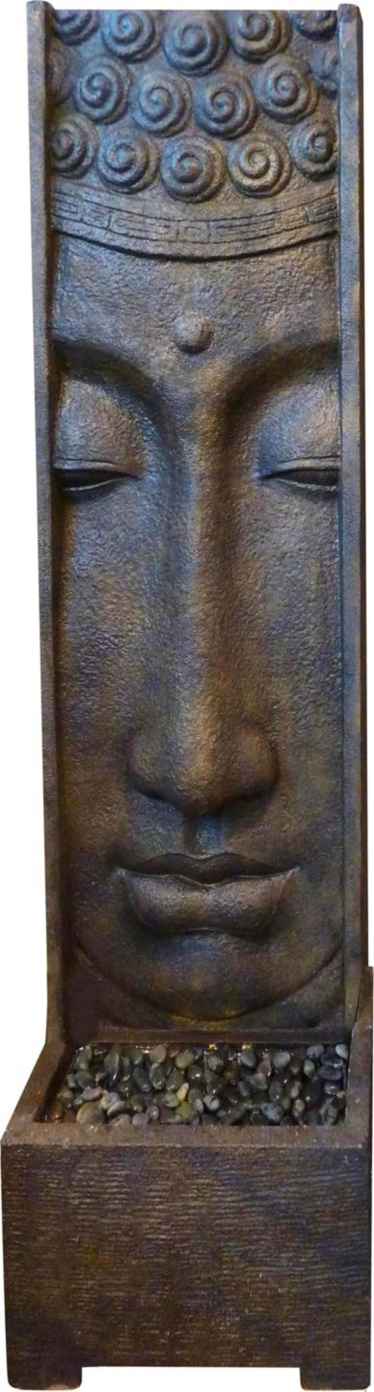Fonte com base em concreto e face do Buda em resina, ideal para áreas externas e internas. Na Bali Design, R$ 4.838 a peça com 1,80 metro.
