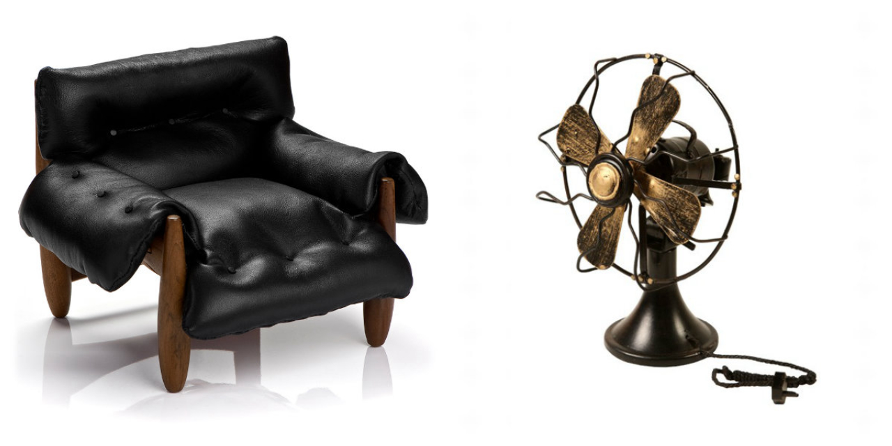 Ventilador antigo, em metal. Na Maria Pia Casa, R$ 113.Cadeirinha cor Tiffany, da Geton Concept. No Extra, R$ 24,62.Barco pesqueiro, em madeira. No Shoptime, R$ 263,20.Telefone vintage. Na Trapemix, R$ 759.Bicicleta dupla, em metal. Na Maria Pia Casa, R$ 145.Filmadora vintage. Na Trapemix, R$ 3.276.Poltrona Mole, de Sergio Rodrigues. Na Decormade, R$ 920.Moto militar, em metal. Na Trapemix, R$ 300.Máquina de costura Sewing. Na Trapemix, R$ 535.Fusca conversível amarelo, em metal. Na Maria Pia Casa, R$ 246.