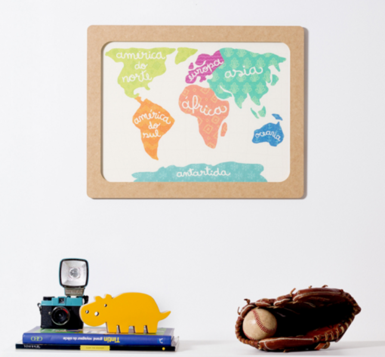 Pra quem desde cedo gosta de geografia, o mapa múndi divertido vai muito bem! Feito em moldura de MDF e com acabamento manual. Na Adot, a partir de R$ 99,90.