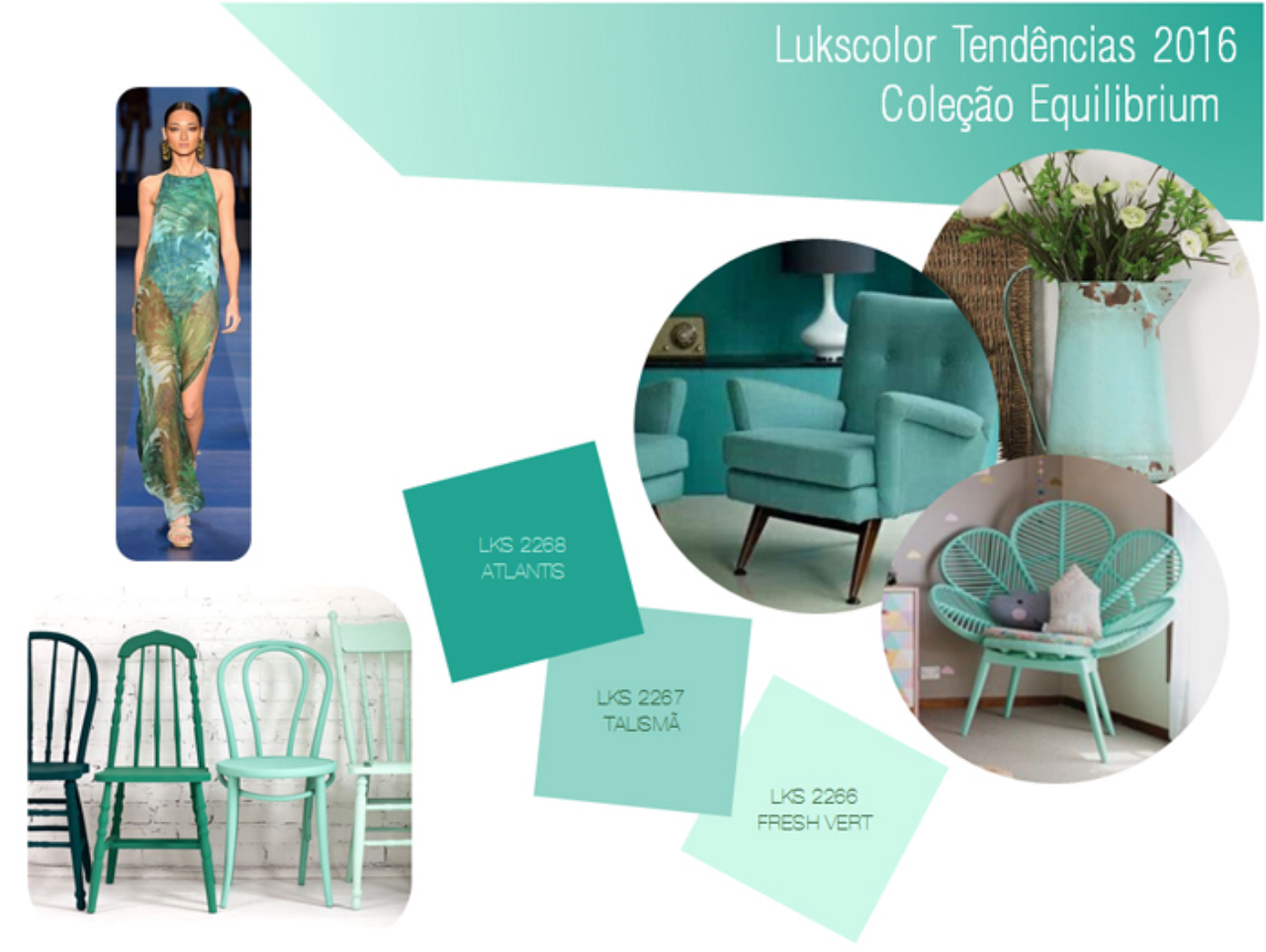 A marca Lukscolor apresenta a primeira coleção de cores integrante do Catálogo de Tendências 2016. A Equilibrium é composta por três tons de verde azulado e é inspirada nos tons de água do Pacífico.