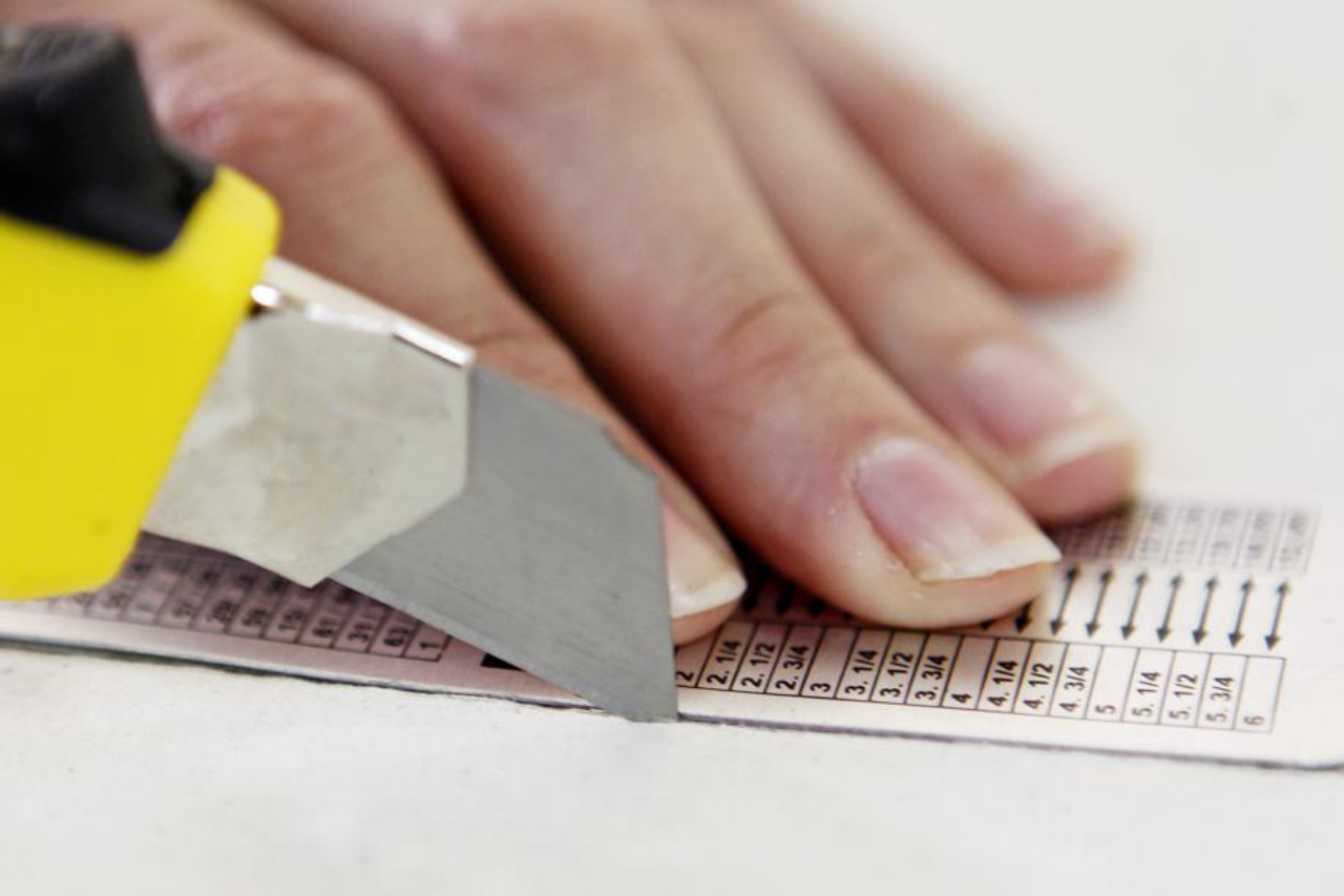 Corte as letras, cuidando para deixar o espaço do miolo para letras como A, B, D, O, P, Q e R. Você precisará de um estilete firme, de preferência com lâmina de 18 milímetros.