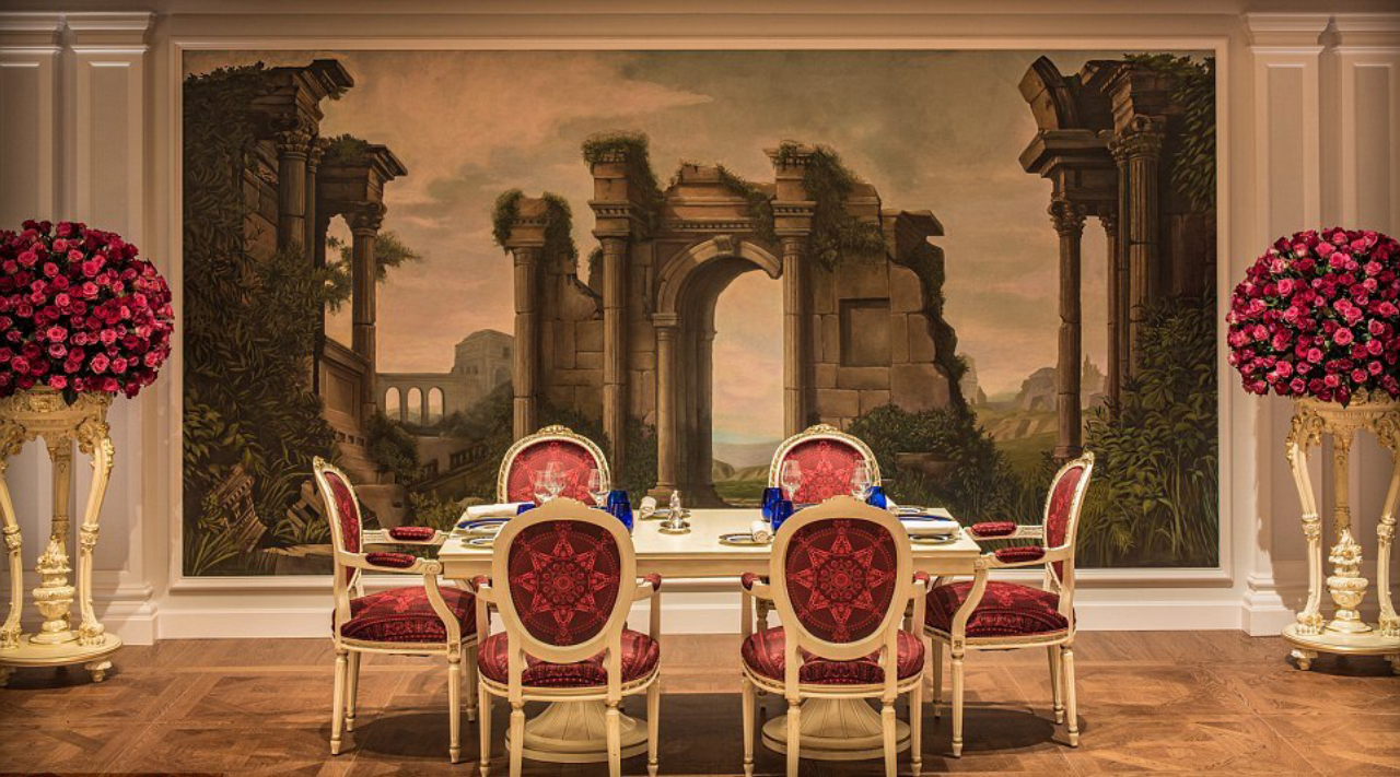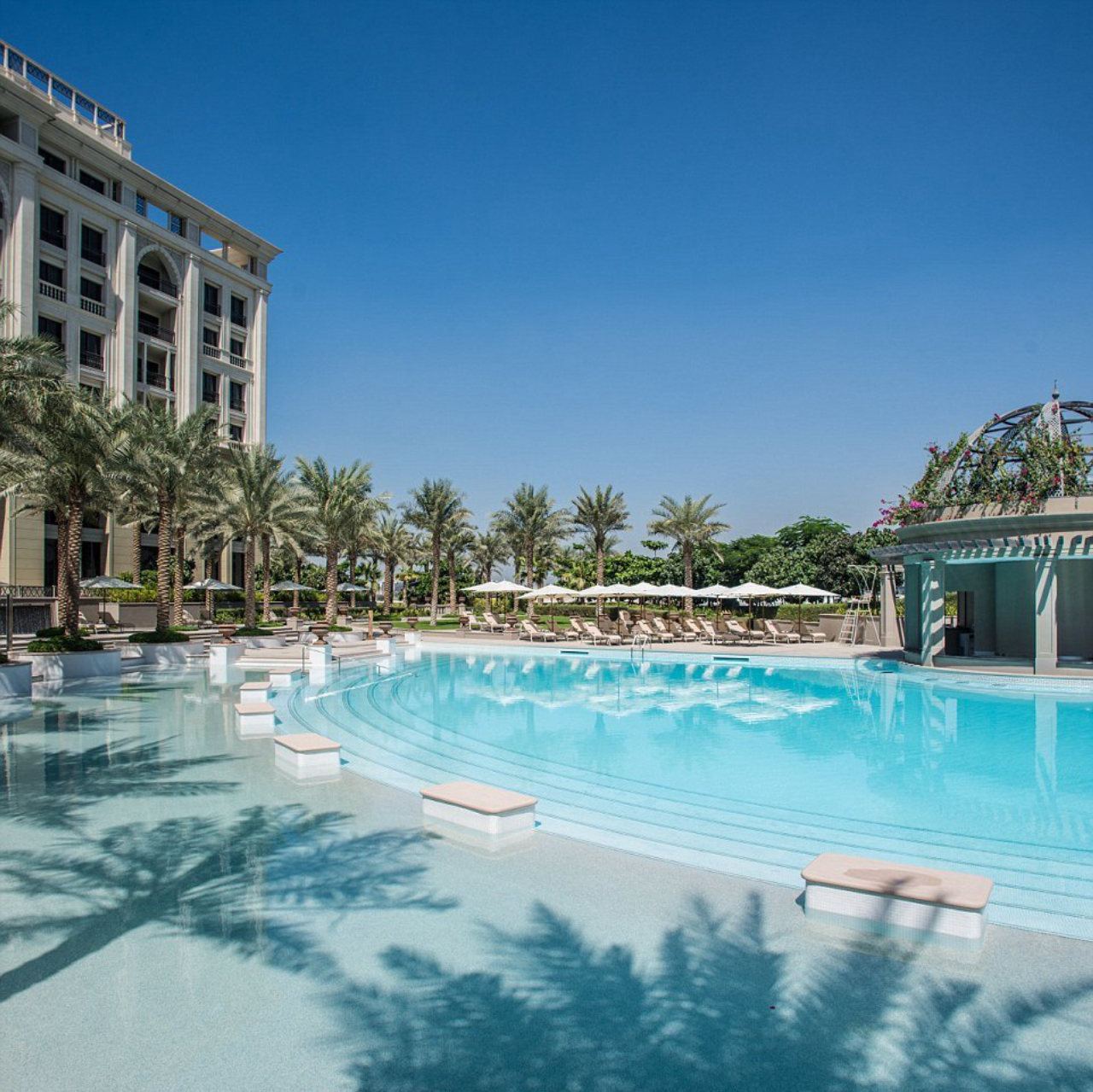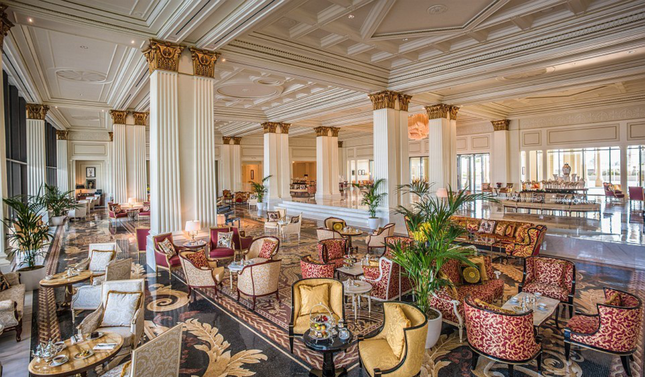 O edifício principal mistura o estilo dos “palazzi” italianos do século 16, com uma estrutura neoclássica e toques da arquitetura árabe. O hotel chama a atenção e atrai turistas pelas dimensões da entrada, pé direito altíssimo, restaurantes e bares temáticos, jardins e piscinas externas e, claro, móveis italianos.