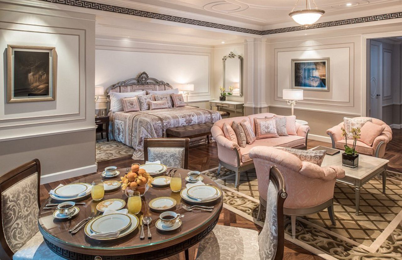 O recém-inaugurado Hotel Palazzo Versace em Dubai foi decorado por Donatella Versace. Fotos: Palazzo Versace / Divulgação.