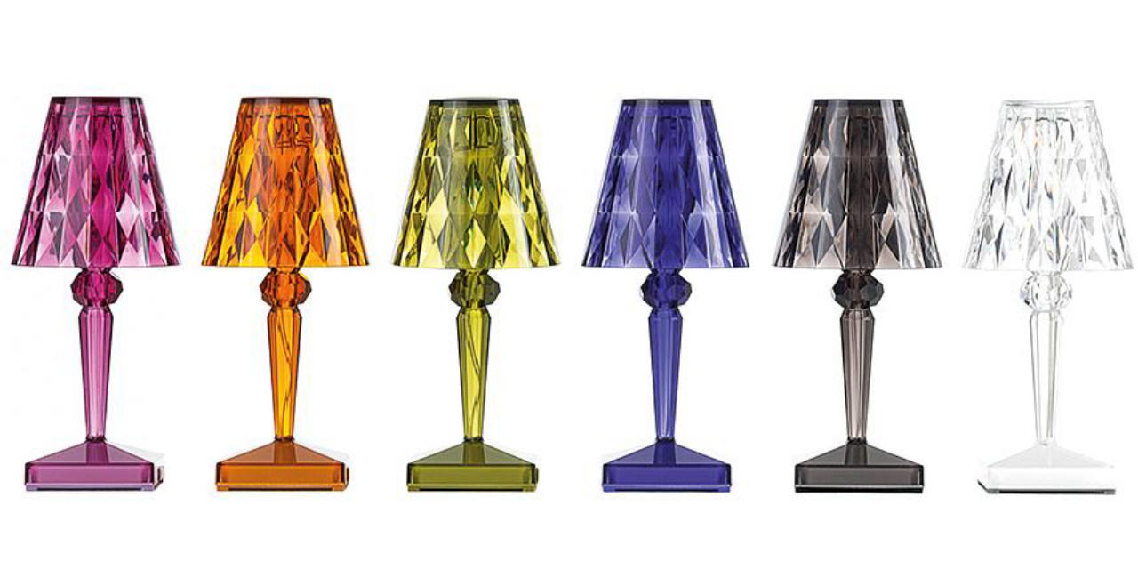 Abajur Battery do designer italiano Ferruccio Laviani para a Kartell em tecnopolímero transparente de diversas cores, com possibilidade de recarregar a lâmpada por cabo USB. Na Kraft, por R$ 1.749.
