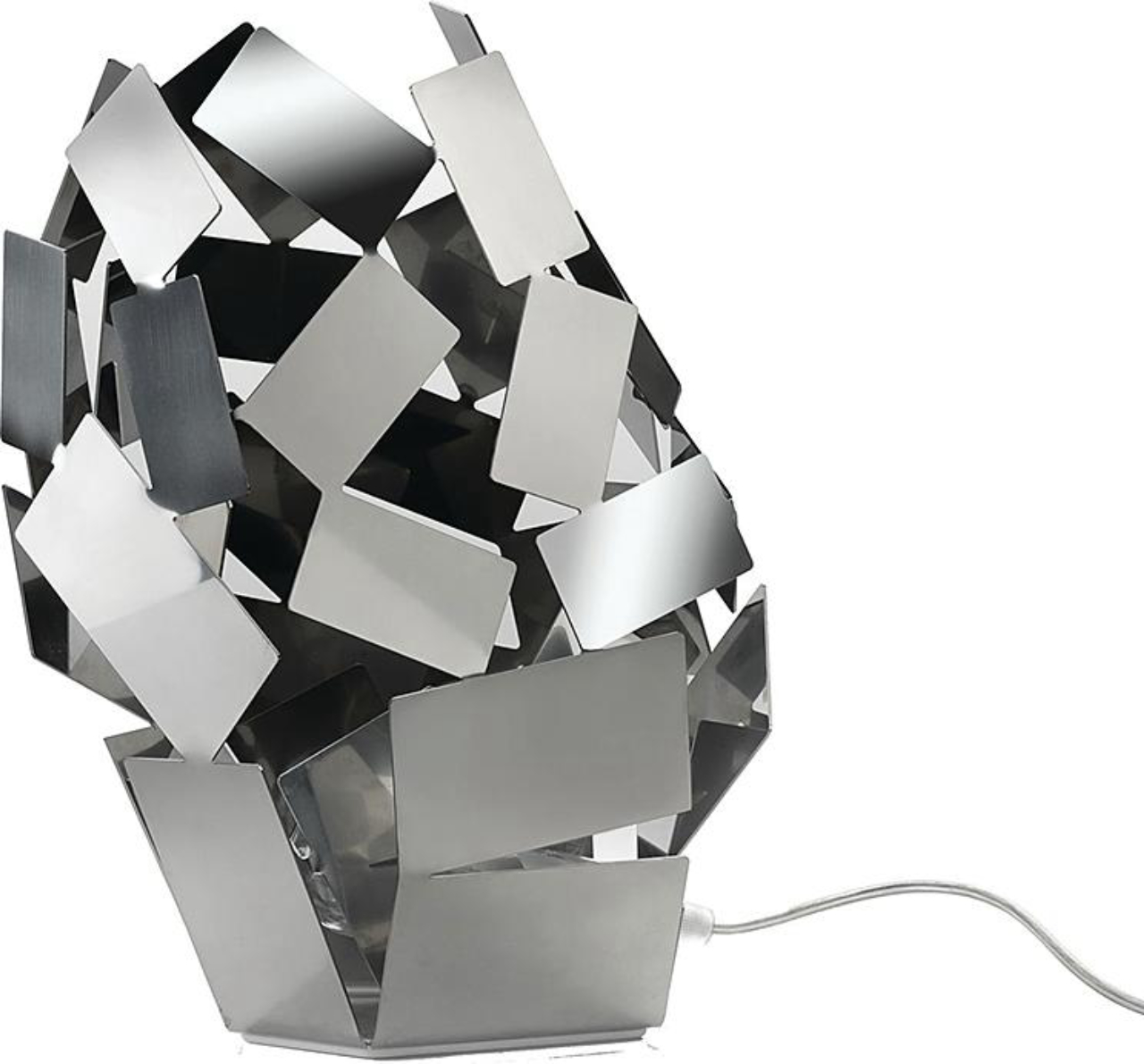 Abajur de aço inox e resina epóxi de Mario Trimarchi para Alessi. Na Benedixt, R$ 2.235,50.