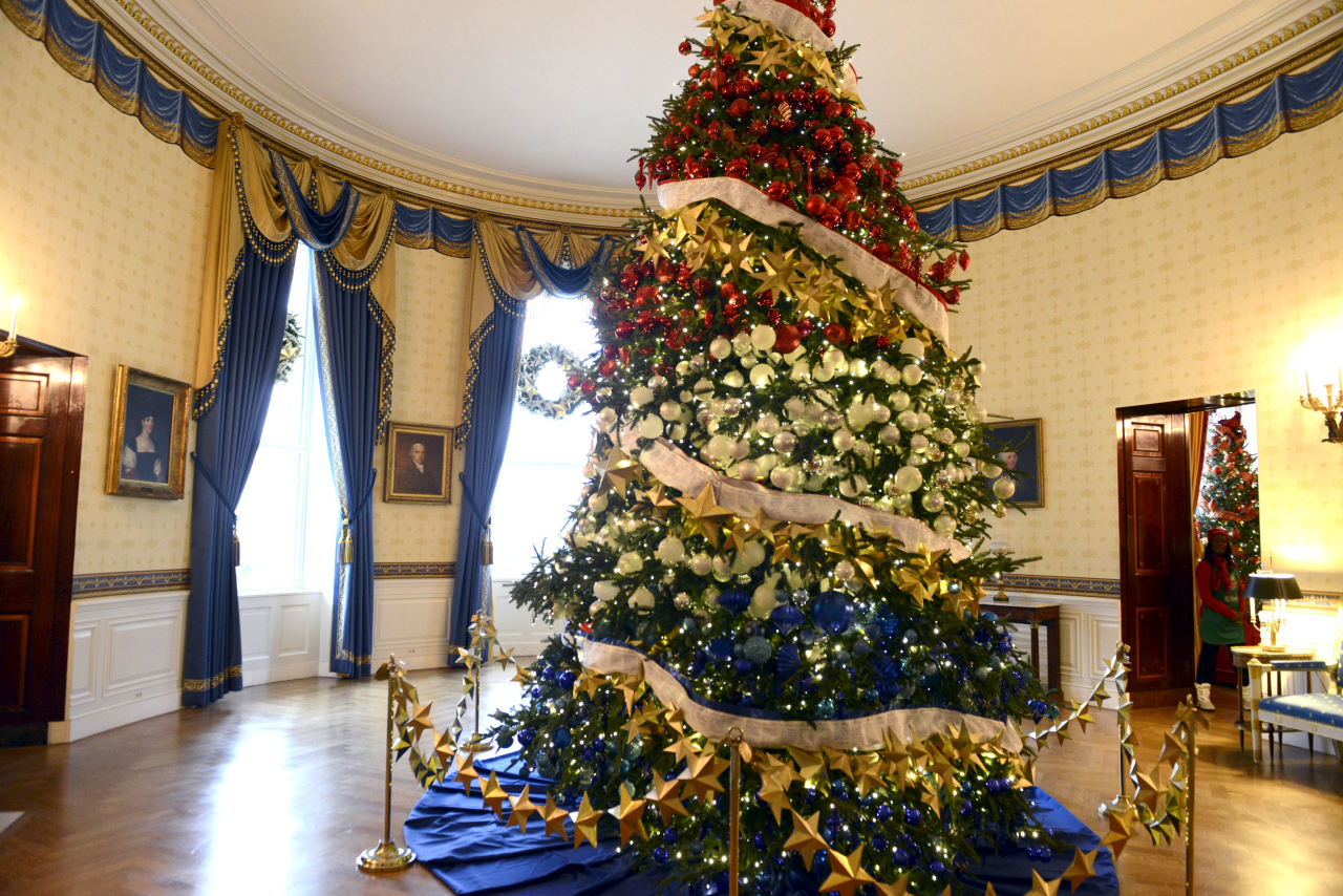 Vestindo look Michel Kors, ela recebeu a imprensa e convidados em Washington para realizar a apresentação oficial. Quem assina o projeto é o designer de interiores Bryan Rafanelli (colaborador de longa data da família Obama), mas um toque fashionista foi inserido em uma série de espaços. São mais de 30 árvores de Natal com linguagens bem diferentes. Michelle convidou quatro nomes importantes da moda para participarem da decoração, e cada um ficou responsável por inserir seu olhar sobre três salas. Carolina Herrera, Humberto Leon, Carol Lim (das marcas Opening Ceremony e Kenzo) e Duro Olowu levaram o clima natalino para a biblioteca, a China Room e a Vermeil Room.