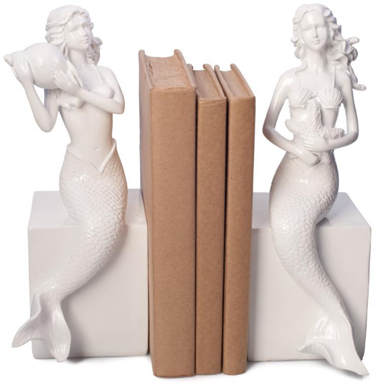 De gatos em resina que simula madeira envelhecida. Na Casa de Valentina, R$ 226,20Da linha animal da Tok&Stok, peça em formato de diversos bichos e em várias cores por R$ 31Apoio para livros de resina em forma de sereias. Na SouQ, R$ 219Suporte de madeira com coral. Na Zara Home, R$ 169,90Homem-suporte. Na Etna, R$ 159,90Suporte de tronco de árvore. Na Zara Home, R$ 119,90