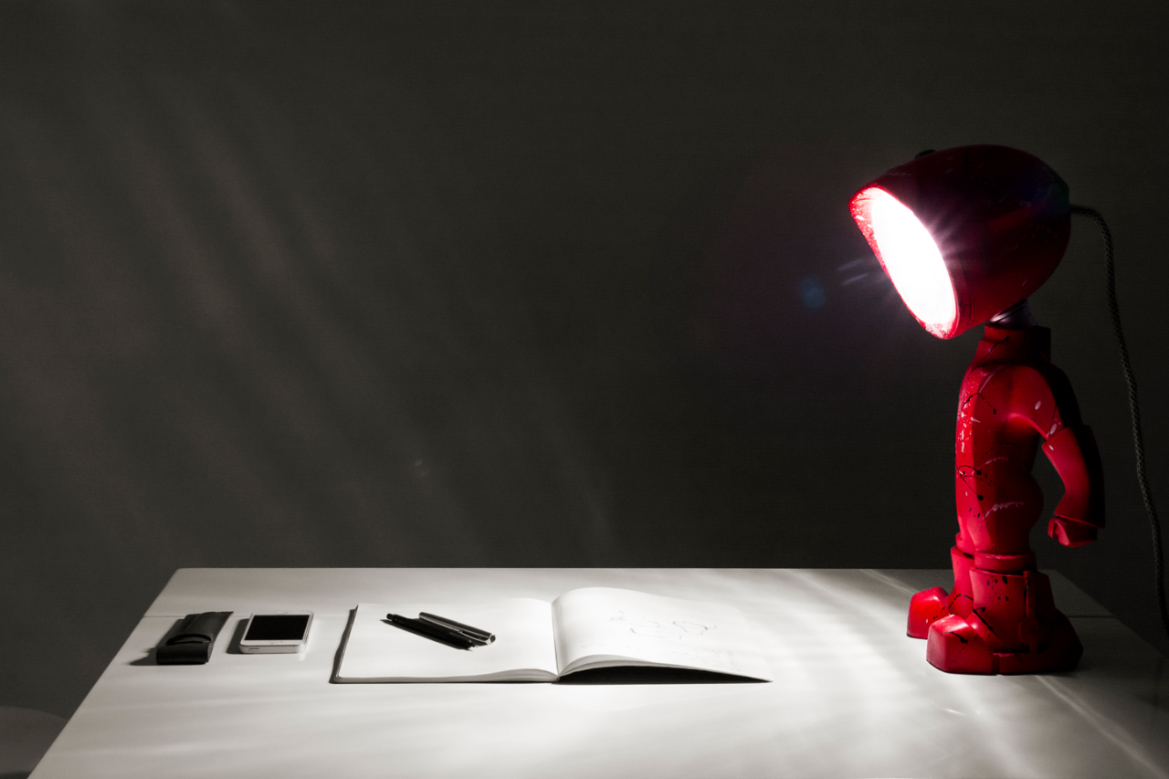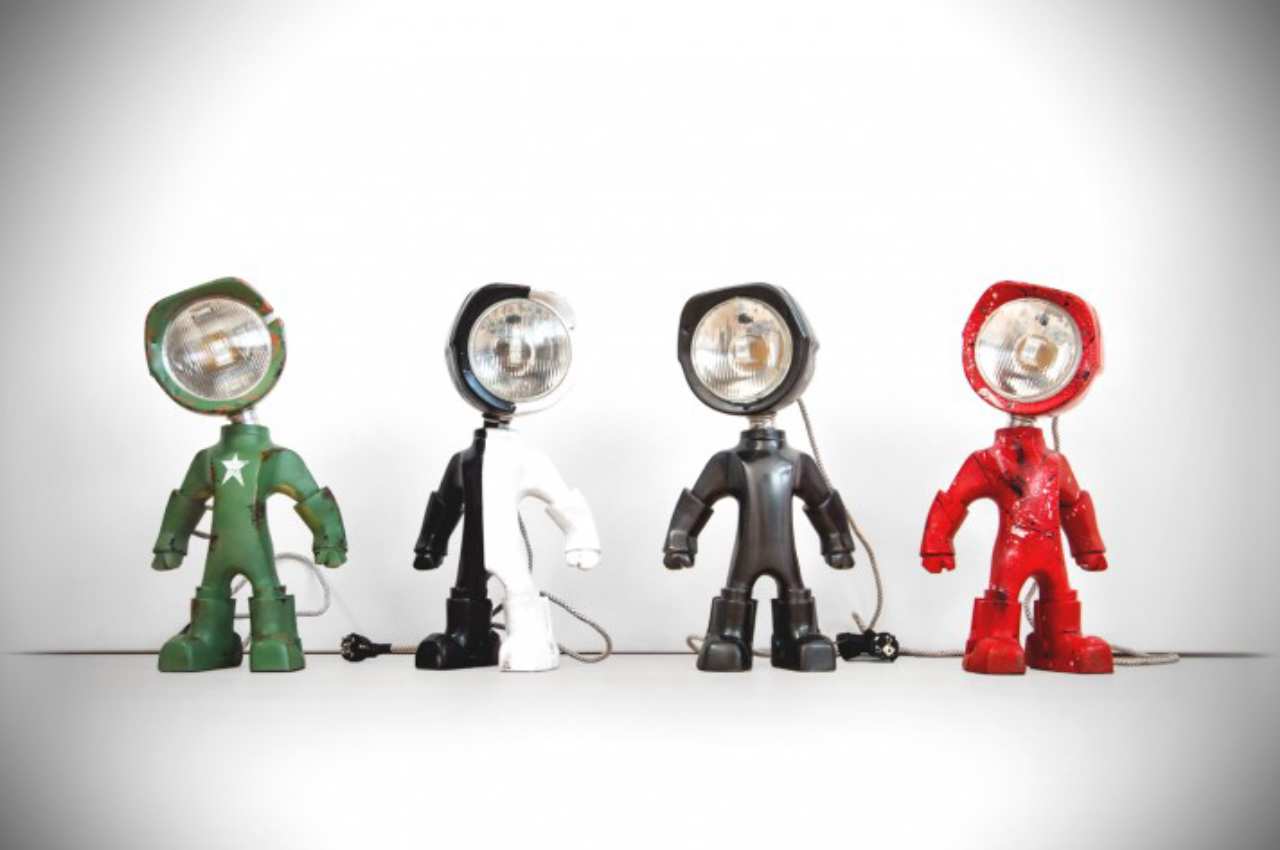 Com um visual retrô inconfundível, o corpo da luminária batizada de The Lampster lembra um super-herói com 46 centímetros de altura. A maior parte da peça é de poliuretano reciclado, o pescoço é feito de alumínio e a cabeça com o farol gira em qualquer direção.